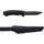 Den 3,2 mm tykke klinge i kulstofstål er belagt med sort DLC-coating, som reducerer både rust og reflektion. Håndtaget i TPE-gummi har friktionsgreb og fingerstop for øget sikkerhed. Ryggen er slebet til brug med ildstål, og den medfølgende sorte polymer-skede har både clips og bælteløkke for fleksibel montering.